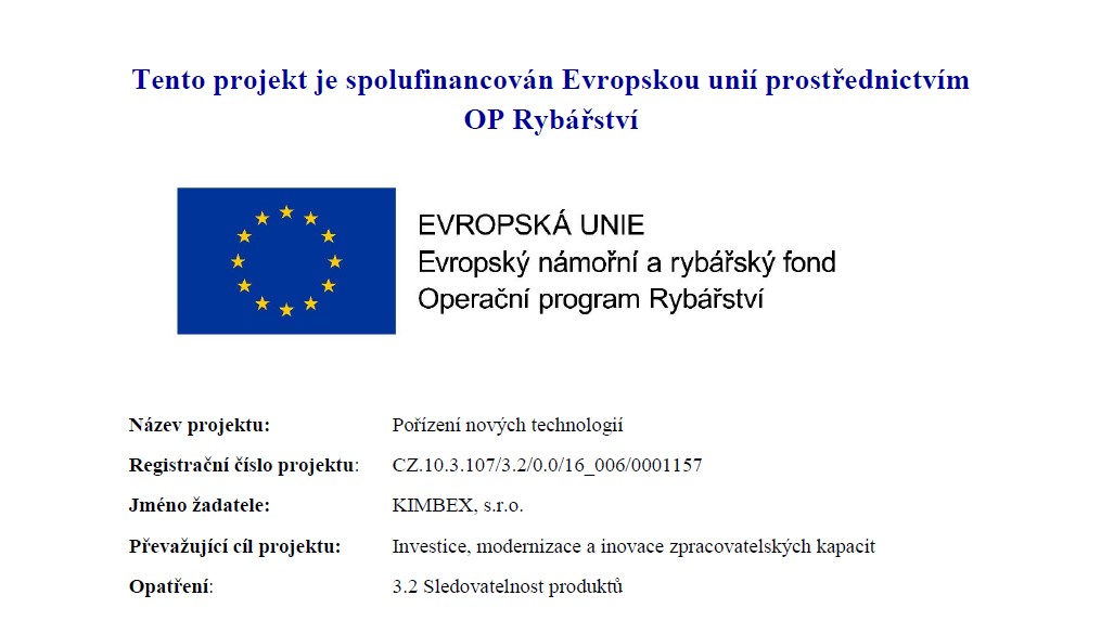 Název projektu: Pořízení technologie pro zpracování vedlejších živočišných produktů z ryb pro společnost KIMBEX